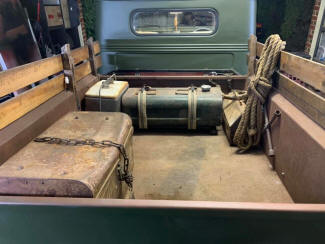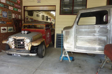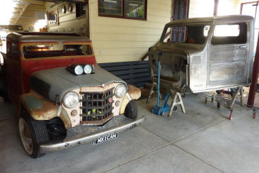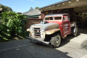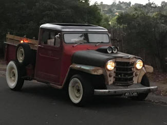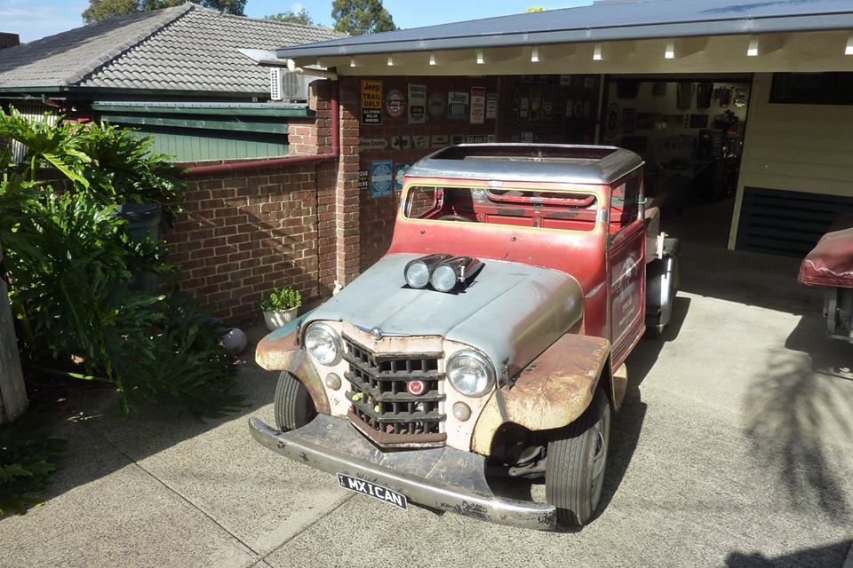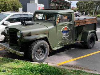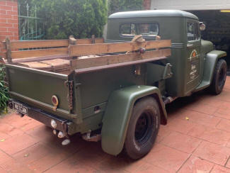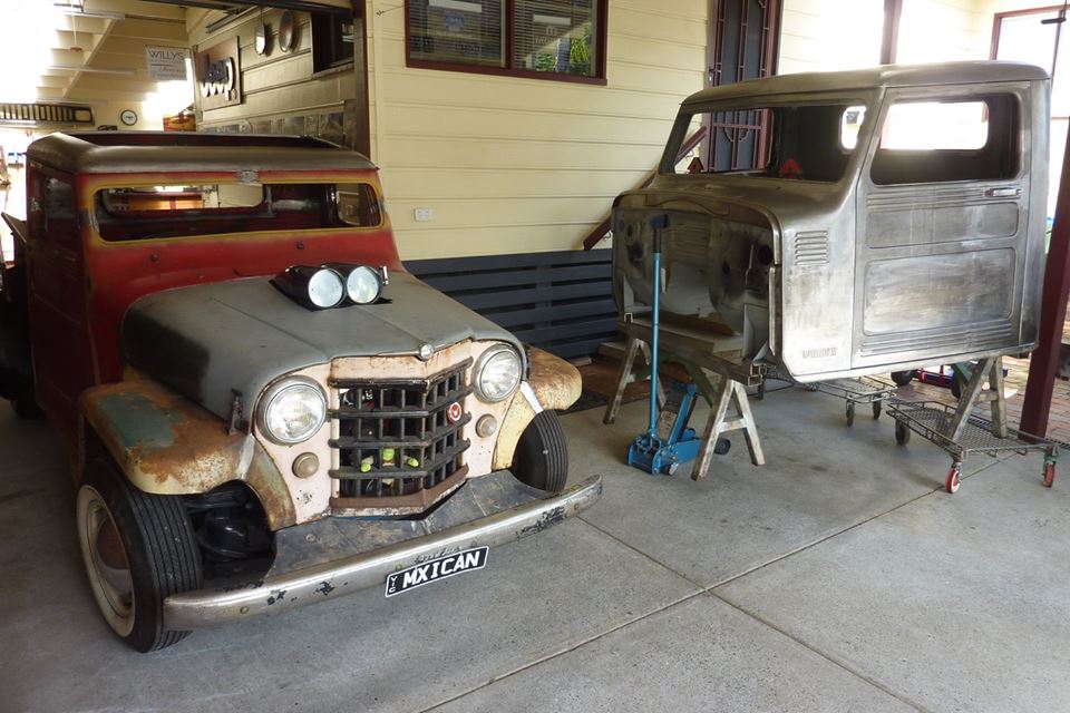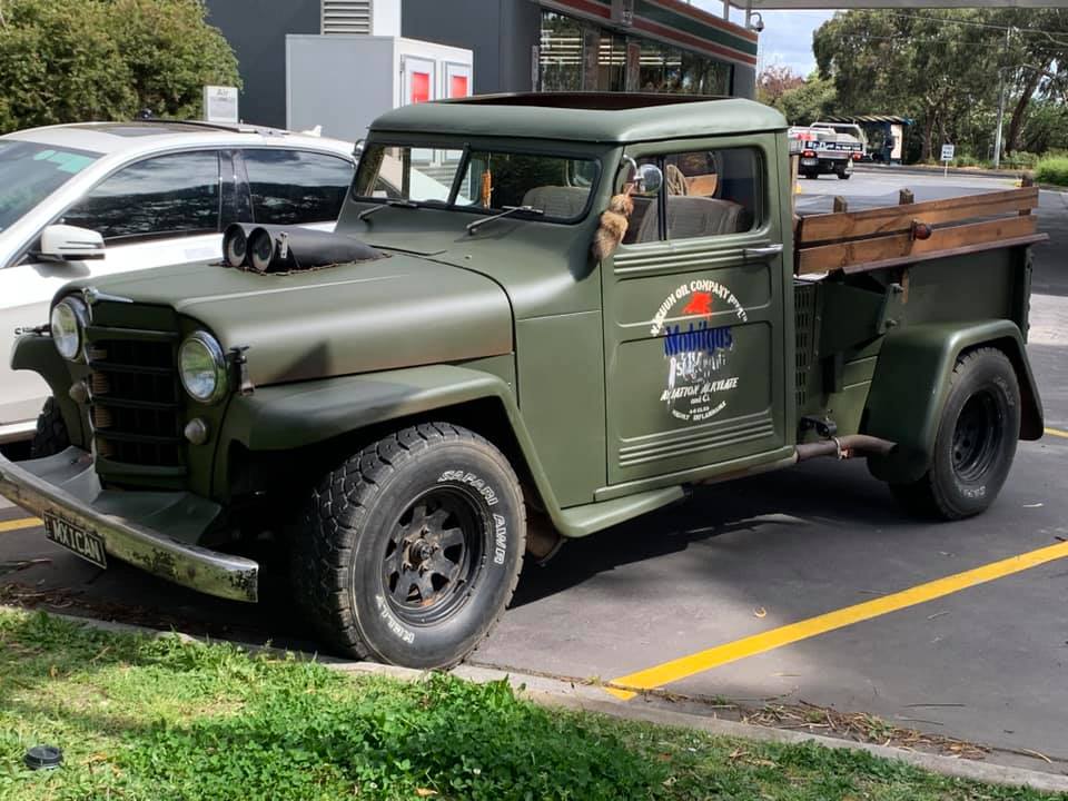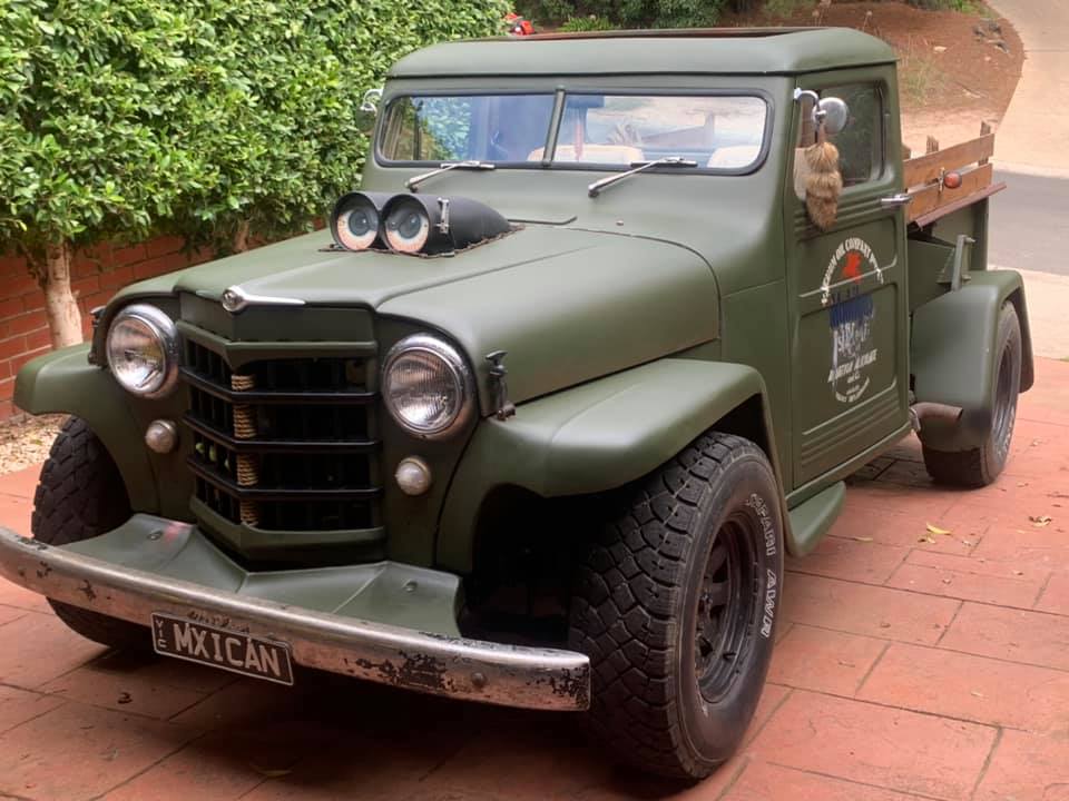 Christos thought the front needed lowering more to fill the front guards. I suggested less rubber rake so mocked up one of the rear wheels on the front. Raised the front 3" the same as it would be fitted with the the 6" taller tyre and think it looks good. Maybe even slightly smaller tyre would work. Pushing it out past my cab and now mine looks huge by comparison!