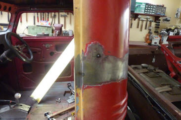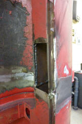I was now able to align the pillar and weld across the back of it and side. Also added weld to both sides to better join the lip left from the face of the pillar as the seat belt mount plate will attach there. Regulations call for a minimum of a 50x75x3mm, ( 2"x3"x1/8") plate for the seat belt mounting bolts. I have gone taller and slightly thicker in this case. A 7/16" UNF nut is mounted behind the plate, the same used on all belt mounting points.