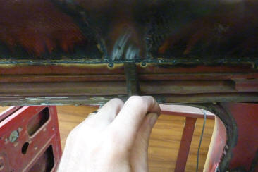 I showed earlier the unsound joint here on both sides. Ended up removing the tack channel from the fill in piece that was too short, and then welding up the rest of the joint. Then fitting a longer tack channel back in its place to meet up with the one that goes down the A pillar. The welds along the side peaked outwards as it had not been probably shaped beforehand. I held this spoon behind the seam and hammer the weld outside until it just touched the spoon. You can feel and hear it when this happens. I didn't want to stretch this weld at all due to the outwards peak it had.